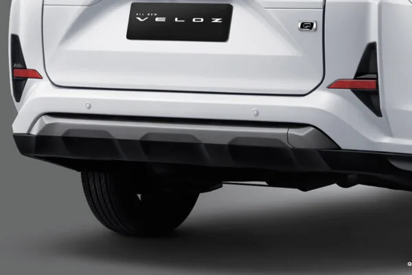 Fitur New Sturdy Rear Bumper dan fitur New Progressive Rear Combination Lamp dengan Full Backdoor LED tidak ketinggalan menghiasi eksterior Toyota Veloz ini. Sentuhan krom di beberapa bagian juga semakin memperkuat elegansi dari mobil ini.